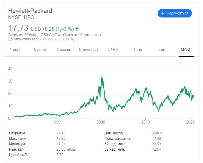 Результат на апрель такой: Ксерокс отказалась от сделки. Удешевление акций HP состоялось практически на 2%. А вот бумаги Xerox сначала выросли на 5,5%, а после этого – упали на 2,3% на дополнительных торгах. По состоянию на 23 июля 2020 года, бумаги HP стоят 17,73 доллара.